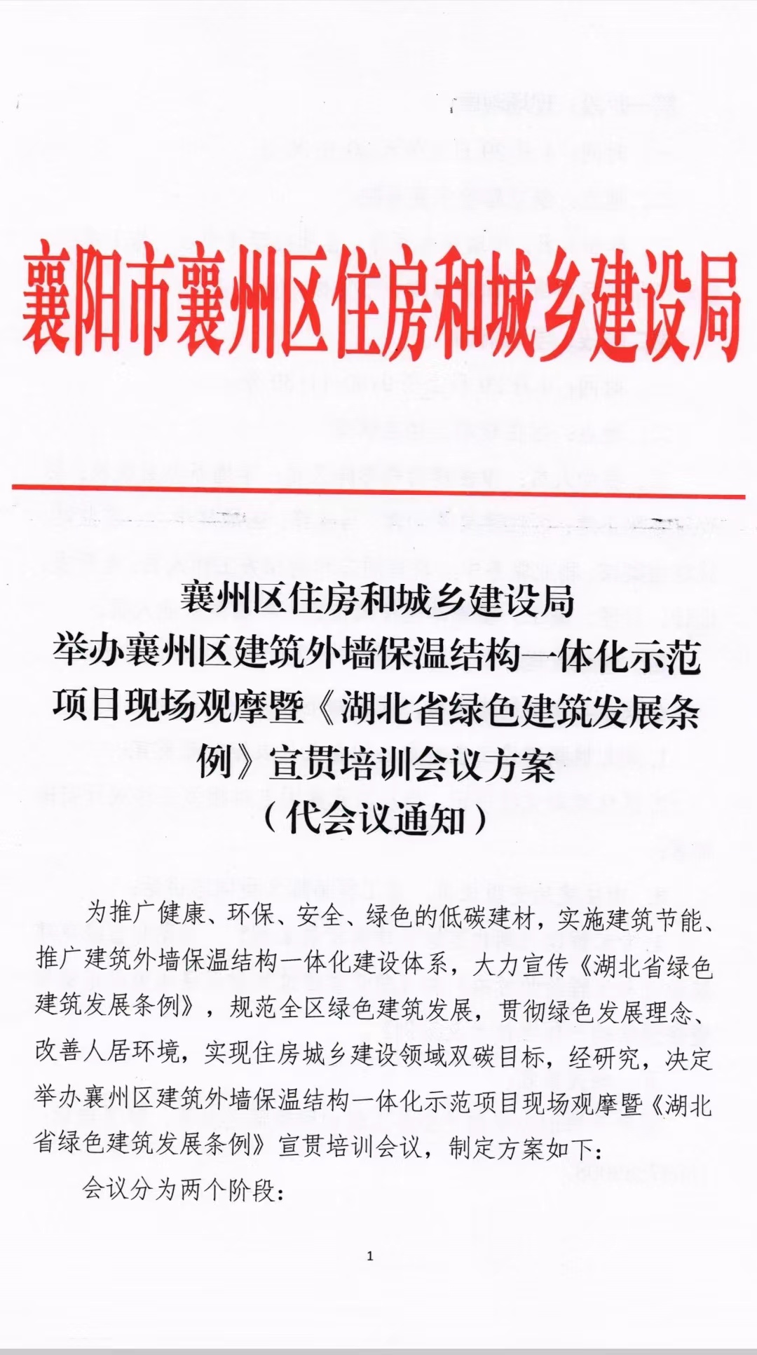 為貫徹綠色發(fā)展理念、改善人居環(huán)境,實(shí)現(xiàn)住房城鄉(xiāng)建設(shè)領(lǐng)域雙碳目標(biāo),落實(shí)省委省政府“自保溫、一體化、同壽命”的外墻保溫系統(tǒng)應(yīng)用要求。4月29日,襄州區(qū)住建局組織舉辦建筑外墻保溫結(jié)構(gòu)一體化示范項(xiàng)目現(xiàn)場(chǎng)觀摩暨《湖北省綠色建筑發(fā)展條例》宣貫培訓(xùn)會(huì)議。襄陽(yáng)市住房和城鄉(xiāng)建設(shè)局、襄陽(yáng)市墻體材料革新與建筑節(jié)能辦公室、襄州區(qū)政府辦公室、襄州區(qū)住房和城鄉(xiāng)建設(shè)局住建局主要領(lǐng)導(dǎo)及襄州區(qū)綠建中心、質(zhì)監(jiān)站、城建檔案館、物業(yè)服務(wù)中心相關(guān)工作人員,各開發(fā)、設(shè)計(jì)、監(jiān)理、施工、圖審單位技術(shù)負(fù)責(zé)人和相關(guān)從業(yè)人員共計(jì)110余人參加。