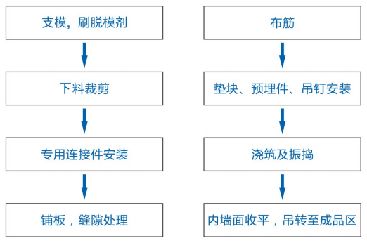 生產(chǎn)預(yù)制混凝土外墻板或構(gòu)件時(shí),在構(gòu)件??騼?nèi),先安裝ASG反打模板并設(shè)置連接件等可靠連接及增強(qiáng)措施,保溫板上方綁扎墻體鋼筋,在其上澆筑混凝土,將保溫層與混凝十主墻體一體化預(yù)制成型的保溫與結(jié)構(gòu)一體化的外墻保溫系統(tǒng)。面層施工在構(gòu)件吊裝施工完成后進(jìn)行。